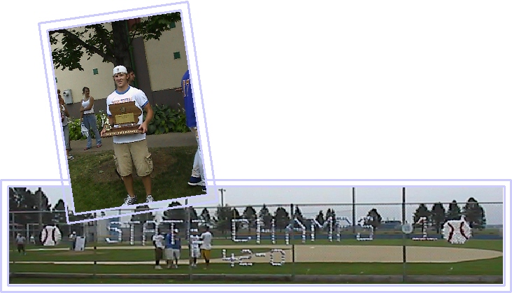 This is a picture of my youngest son, his senior year in 2005. His baseball team ended the season 42-0. The rare thing, “the sign is made out of styrofoam cups stuck in a chain link fence.” Also the rare thing is, not too many teams can go the whole year undefeated. I’m proud of him too, just like I was proud of my hubby last week in the photo hunt!