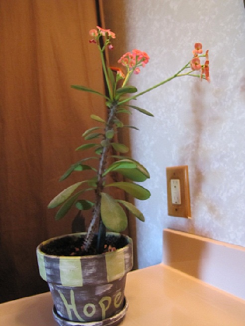 This plant is one of very few indoor plants that I have ever kept alive. This gives me hope that no matter how much I have to lean on Him, how dirty I get, or how hard the thorns of life hurt He is right there for me. He will forgive me, continue to give me hope and continue to tell me I am beautiful in his eyes. I am so thankful that he wore those crown of thorns so many years ago and took on my sins so that I could have hope and be joyful in the God of my salvation!